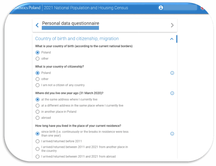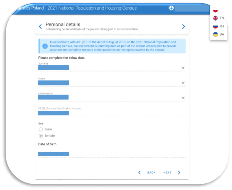 Each resident of Poland is required to complete the ONLINE form. Parents or legal guardians make the census on behalf of the children. For foreigners without a PESEL number, a separate login mode using e-mail is available. Only in exceptional cases, when the person covered by the census cannot complete the form online, data is collected over the phone or in person.