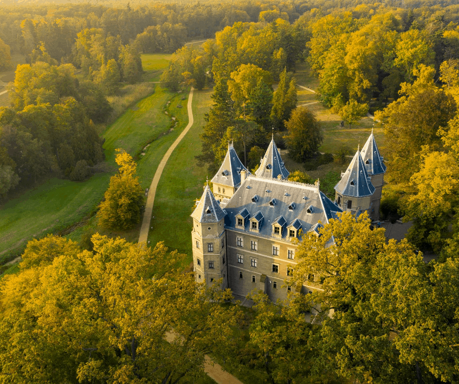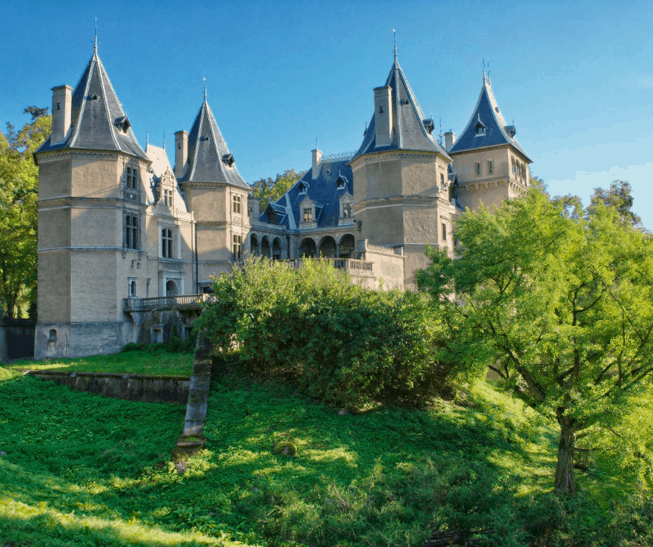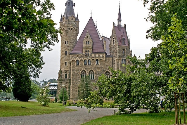 The history of the palace dates back to the 18th century, the present building is a combination of neo-gothic and neo-renaissance styles, from the turn of the 19th and 20th centuries. This fairy-tale palace is famous for its 99 towers and 365 rooms, and a large park with centuries-old trees (beautiful photo gallery of the park) and azaleas and rhododendrons (bloom around May). The palace offers different tours (including “an extreme tour” of underground corridors, previously unavailable chambers and a dark crypt), and hotel rooms.