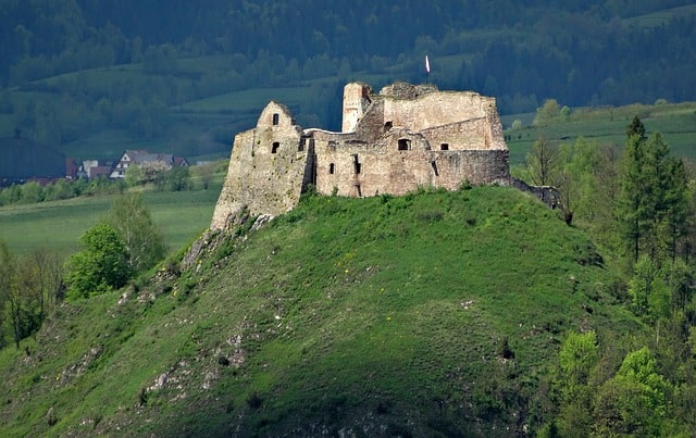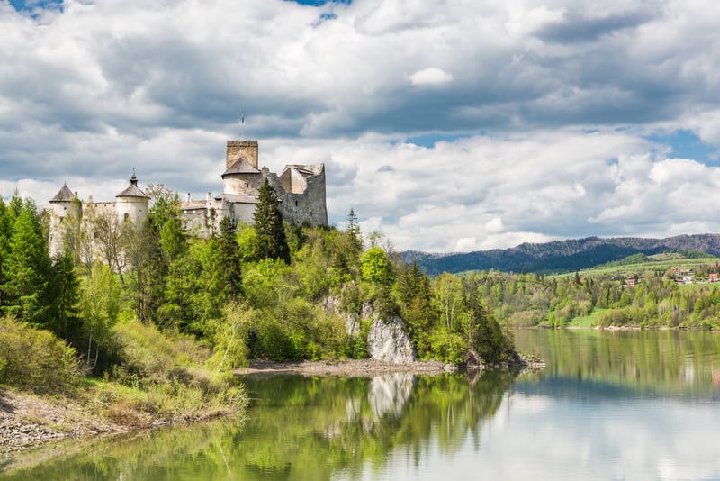 Czorsztyn Castle (magnificent ruins of the castle from the fourteenth century) and Niedzica Castle (Zamek Dunajec) are both located on the shores Czorsztyńskie Lake (Jezioro Czorsztyńskie). The lake is beautifully located between the Pieniny Mountains and Gorce Mountains; it’s an artificial water reservoir on the Dunajec River, created by building a water dam in Niedzica town. Both castles are open to tourists, and small cruise marinas have been built next to them so you can enjoy the views from lake cruises (a boat or a gondola). There is also a free guarded beach (Plaża Pieniny) and a bike trail around the lake.
