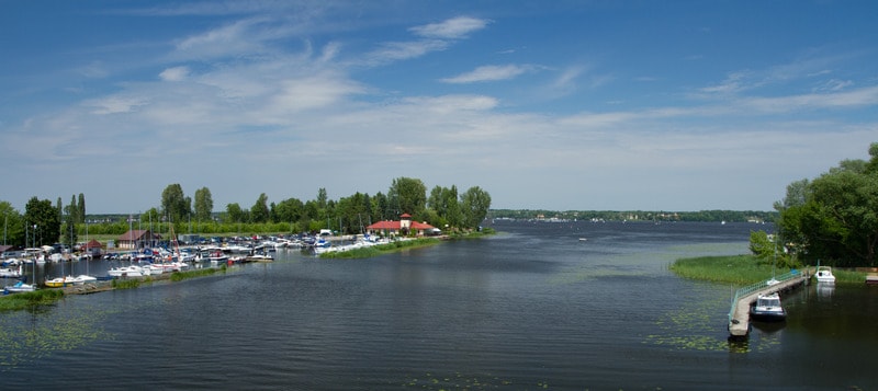 Zegrze Reservoir/Zegrze Lake (called in Polish Jezioro Zegrzyńskie or Zalew Zegrzyński), a man-made lake developed in 1963, located 30 km north of Warsaw, is a very popular place among Warsaw residents for summer getaways. The most convenient way to get there is by car (Zegrze on Google map).