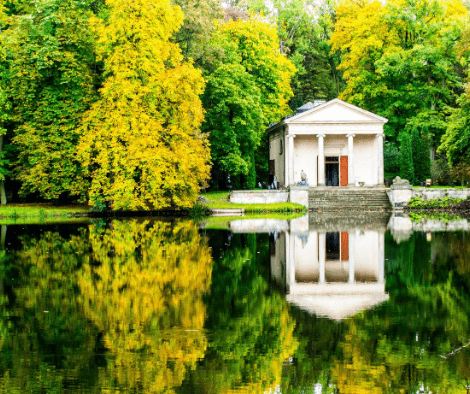 An English-style romantic garden (established in 1778) in the village of Arkadia is one of the few sentimental and romantic gardens in Europe that survived in a slightly changed form. You will find there numerous references to the art and architecture of antiquity and the Middle Ages, as well as folk culture. So do not be surprised by the Temple of Diana, Roman aqueduct and circus, Gothic house, or some ‘artificial’ ruin.