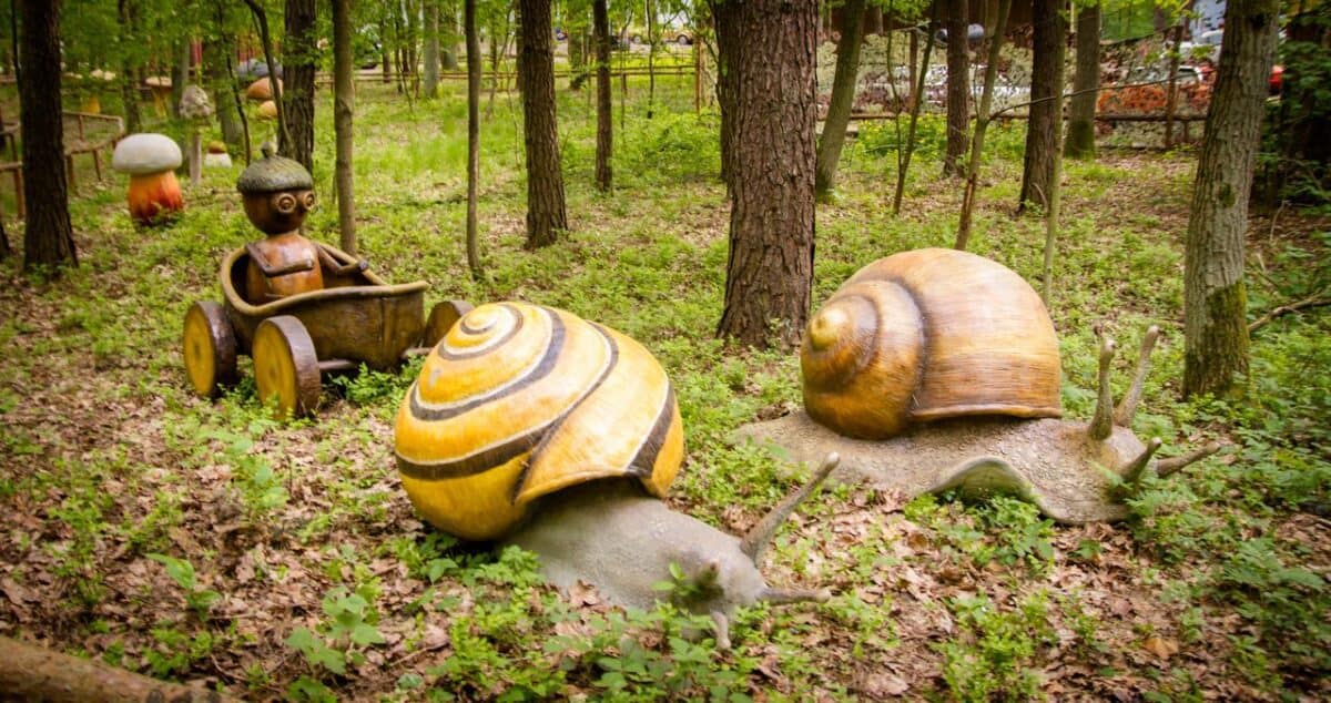 The park covers several hectares with designed greenery, flowers, trees, streams, waterfalls, and of course attractions for children – fairytale zones with mysterious inhabitants.