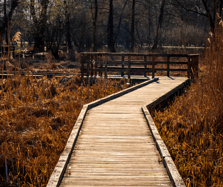 - A walk in the forest, a wooden footbridge over the swamps, and a ferry across the Vistula River, 40 km from Warsaw