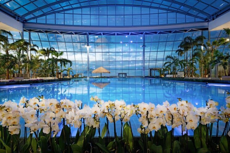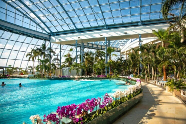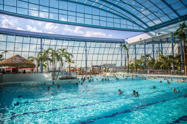 - The largest indoor water park in Europe, including 18 pools with a total surface of 3500 square meters (a tropical pool, a thermal pool, a giant wave pool).