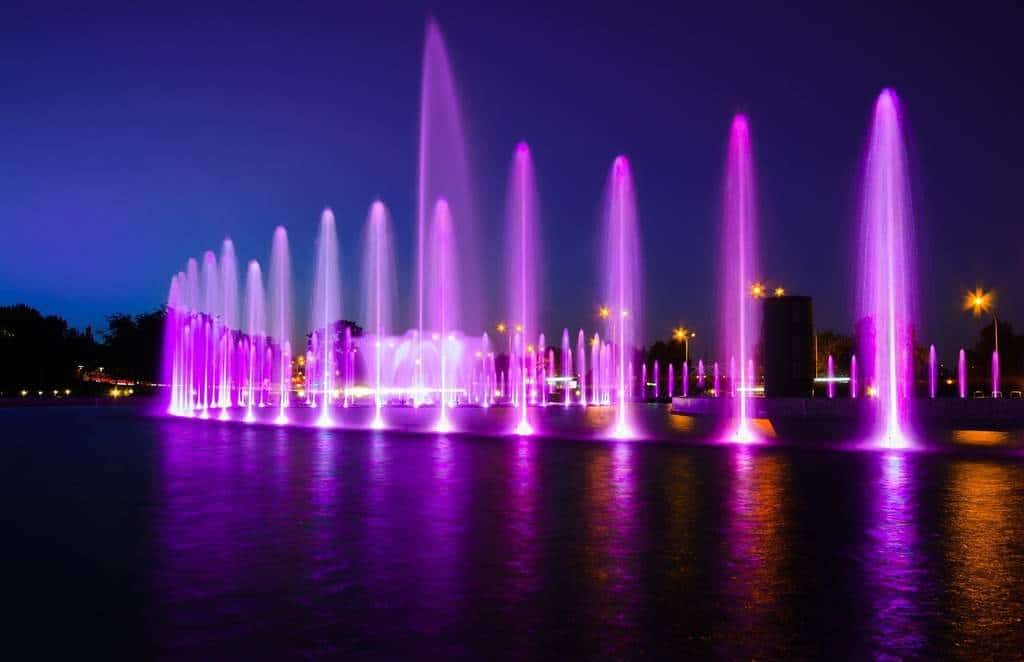 Fountain complex operating from May until September. Free entrance. Each Friday and Saturday evening multimedia show (fountains, laser, music, and lights). Click here to read our tips on the Multimedia Fountain Park.