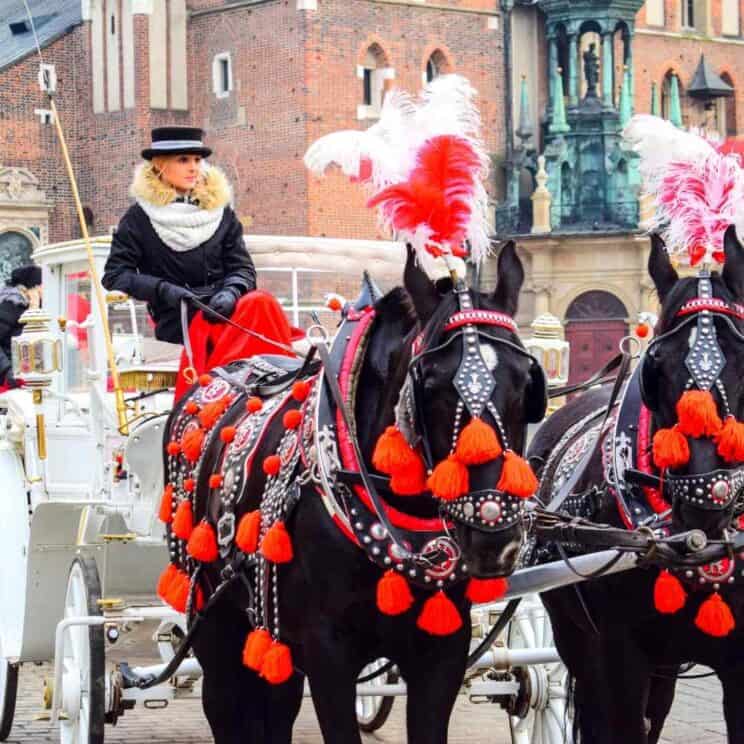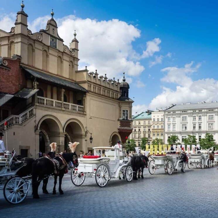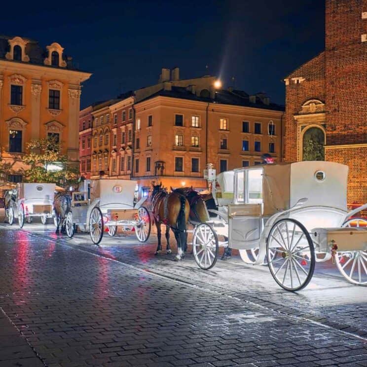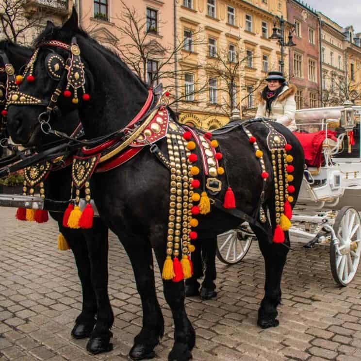 When you get tired, a nice break is a horse-drawn carriage ride. A basic tour with horse and carriage (from the Old Town down to the Wawel Castle) takes about 20 minutes.