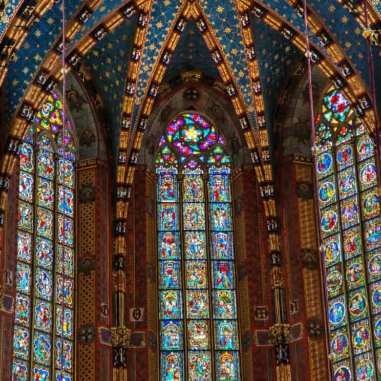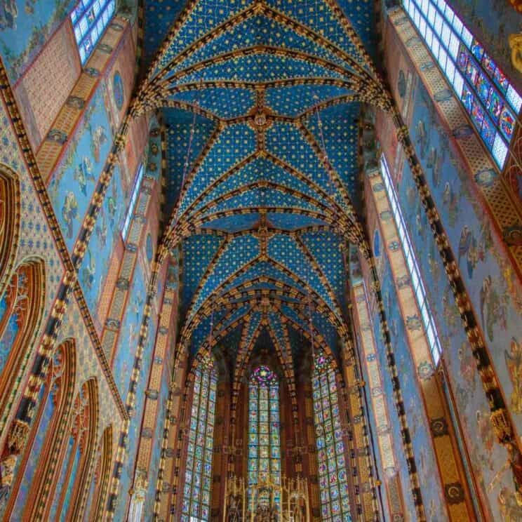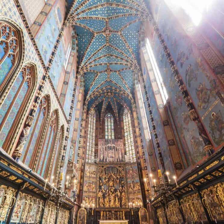 In one of the corners of the Market Square, there is St. Mary’s Basilica, a gothic church dating back to the early 13th century (Bazylika Mariacka, location on Google map, website in English). We know that children usually do not react enthusiastically to visiting churches but in the case of St. Mary’s Basilica, it is worth trading with them! To be in Krakow and not to see St. Mary’s Basilica inside is like being in Paris and not to visit Notre-Dame Cathedral. St. Mary’s Basilica is famous for its wooden altarpiece (after almost six years of restoration work, the altar was fully unveiled in February 2021) and unique stained glass windows.