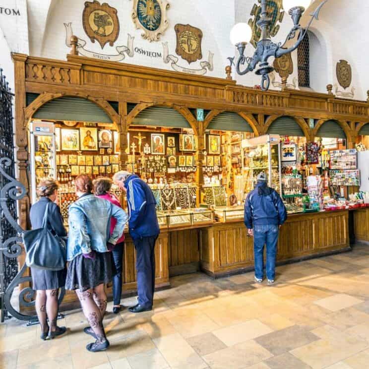 In the central part of the Main Market Square there is a large renaissance building – Krakow’s oldest “shopping center” called in Polish Sukiennice (the Cloth Hall). Today, there are stalls selling traditional Polish jewelry, souvenirs or handicrafts, and on the first floor, there is a branch of the National Museum – the Gallery of Polish Painting and Sculpture of the 19th century.