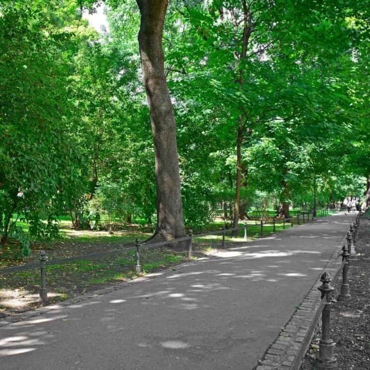 What if you feel tired of sightseeing and want to take a break? Take a look at the map of Krakow, you will notice that the Old Town is surrounded by a wide ribbon of greenery. This is a city park called Planty in Polish – a great place to get away from the hustle and bustle of the Old Town. The park is full of old trees that provide blissful shade, most of which are the dignified branching chestnut trees. You will find here playgrounds too.