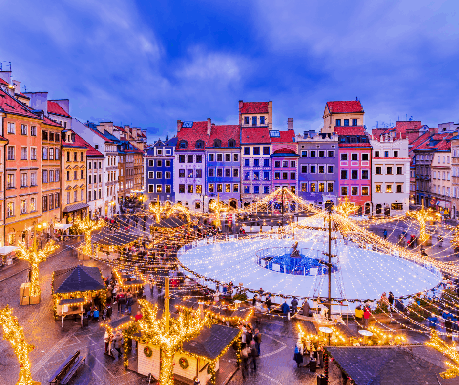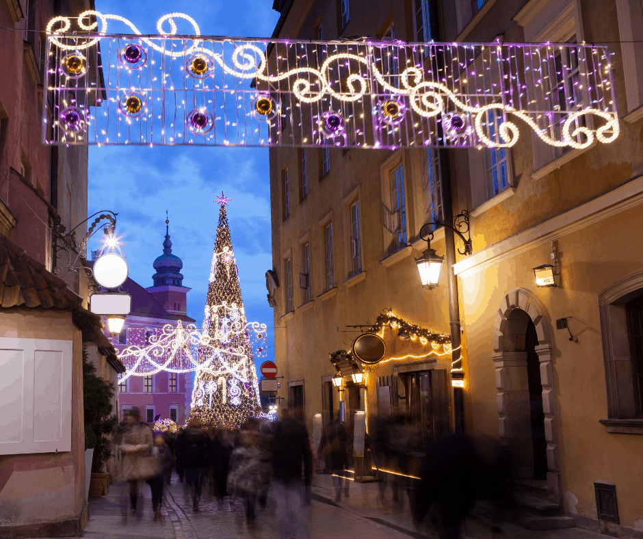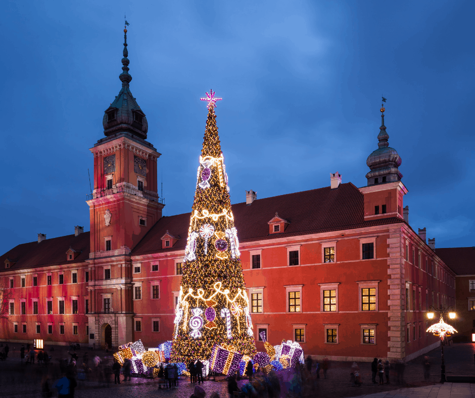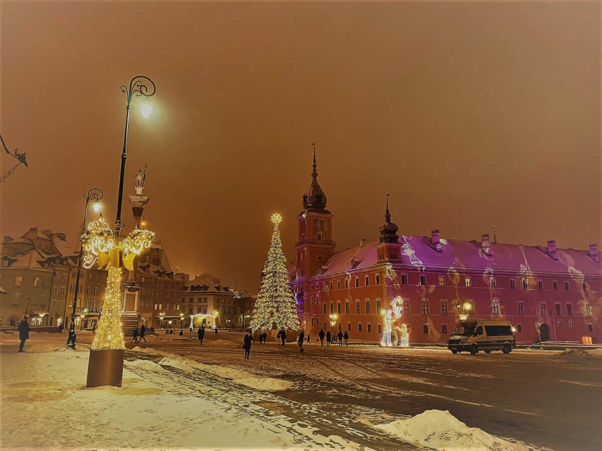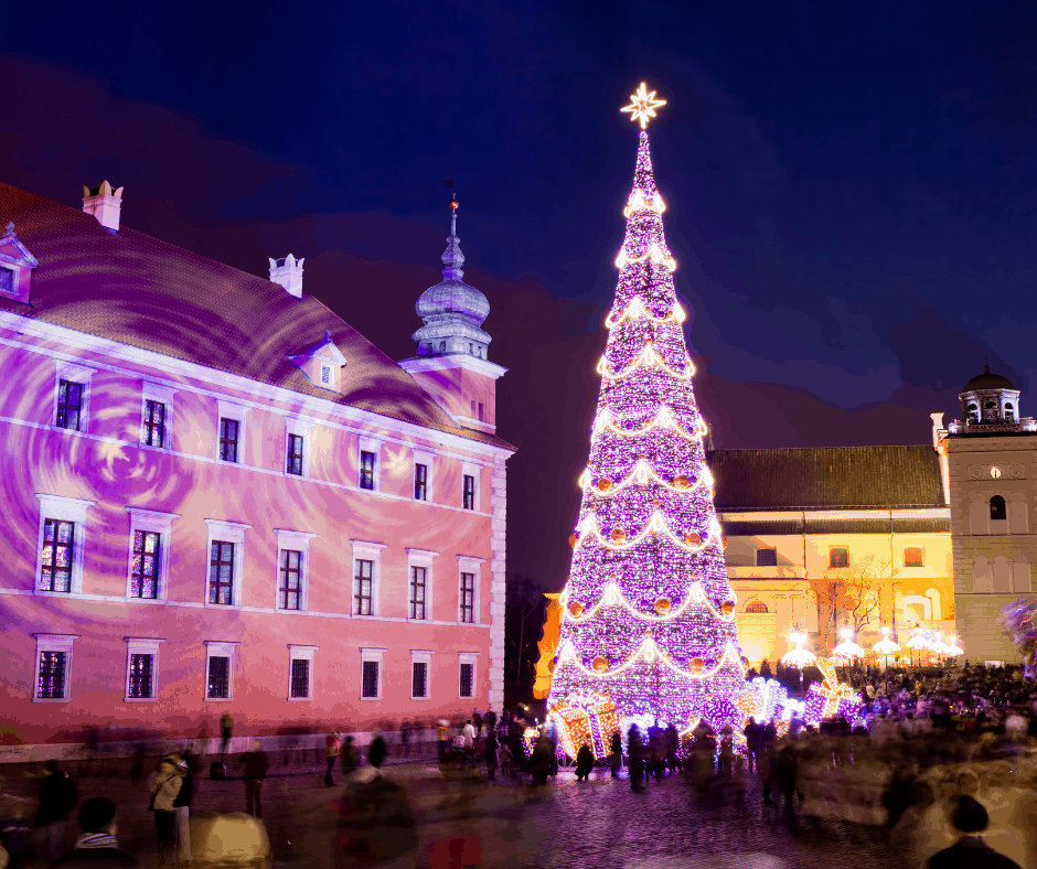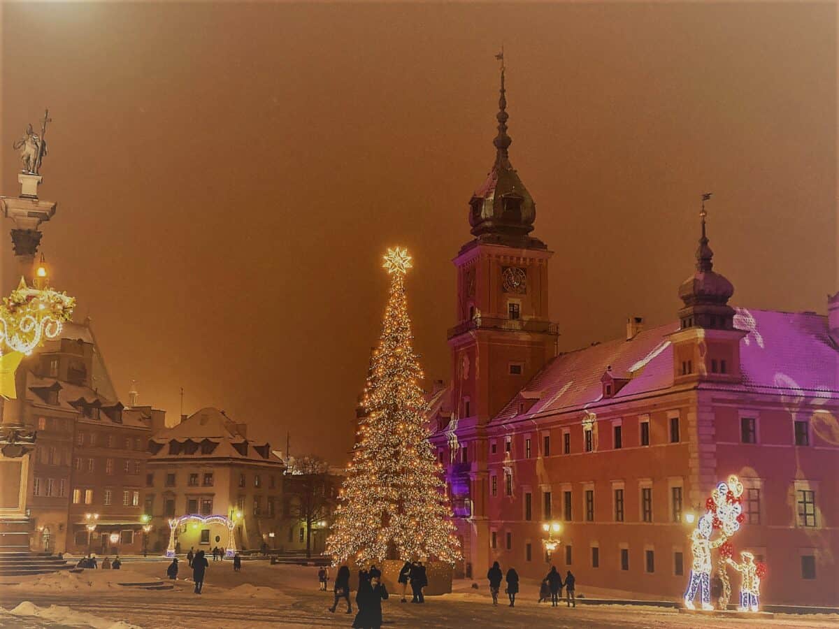 The largest Christmas tree in Warsaw is lit on Castle Square (Plac Zamkowy) in Warsaw’s Old Town.