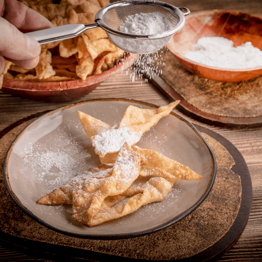 It’s a sweet crisp pastry, twisted and shaped into ribbons, always sprinkled with powdered sugar – sounds like the perfect indulgence on a winter day in Poland!