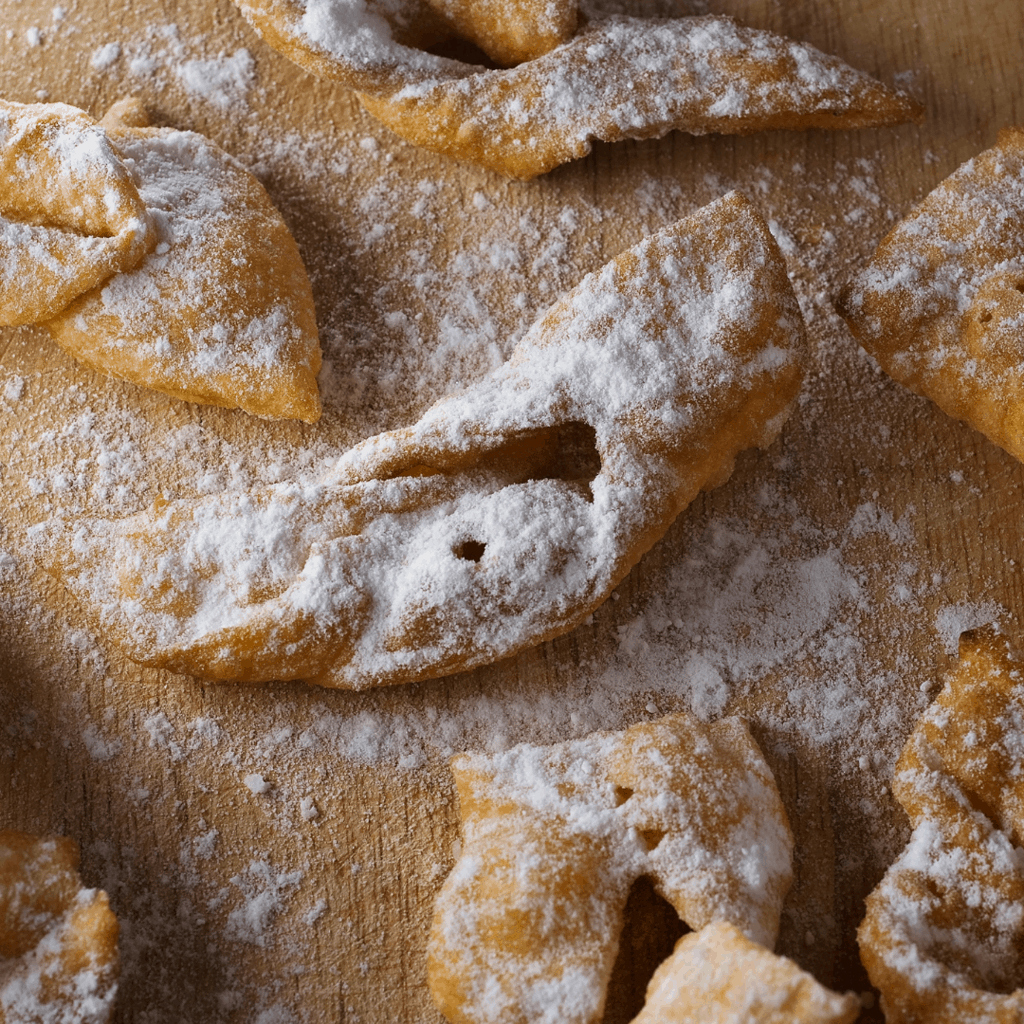 Traditional Polish carnival pastry – angel wings. Their Polish name has different versions, depending on the region: faworki / chruściki / / chrusty. However, the most common name is faworki, the word derived from the French ‘faveur‘ (meaning ribbon).