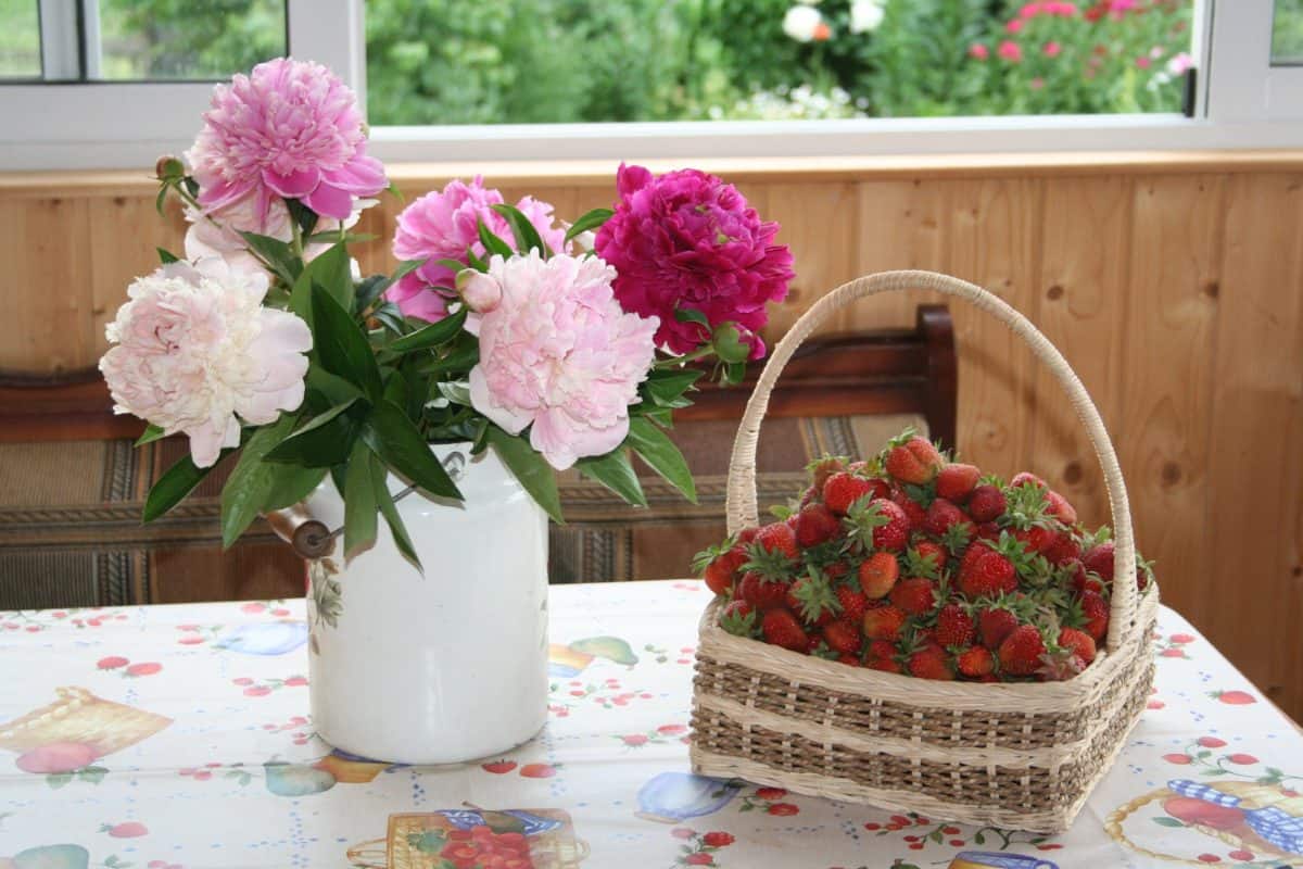 Gardens in Poland in June are in full bloom with countless flowers, including peonies (in Polish piwonie or peonie) which are available only for a short period of time in June.