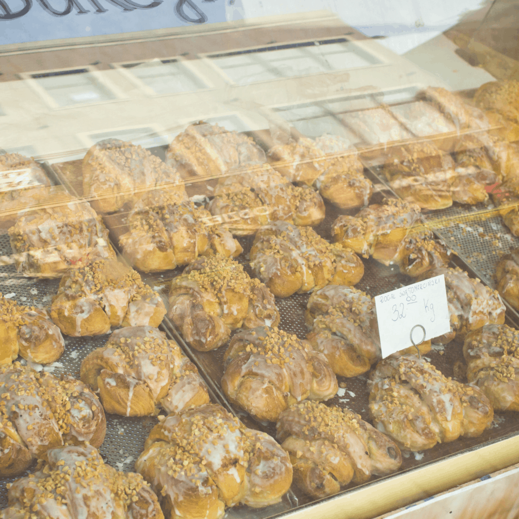Rogal Świętomarciński, a symbol of the city of Poznań – a delicious pastry called in English St. Martin’s Croissant (rogal has a similar shape to a French croissant, however, you prepare the Poznań rogal with an addition of yeast). The filling is the most important part of it and includes white poppy seeds, almonds or other nuts, vanilla, raisins, ground dates or figs.