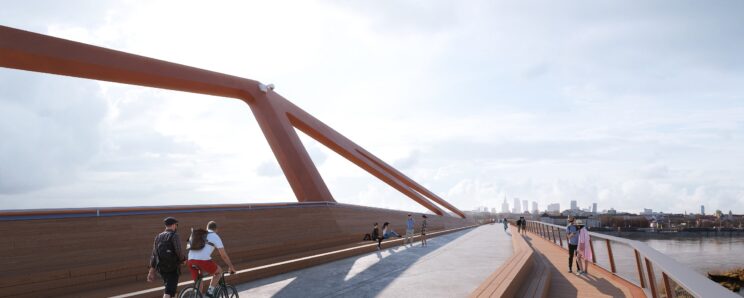 The bridge will connect the Vistula Boulevards (in the vicinity of Karowa Street) with the Praga district (Okrzei Street). It will be one of the longest pedestrian and bicycle bridges in the world (the new bridge will be approx. 500 m long).