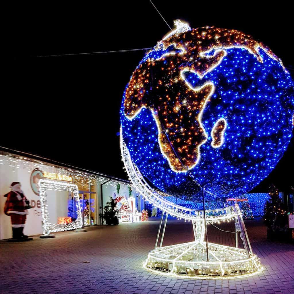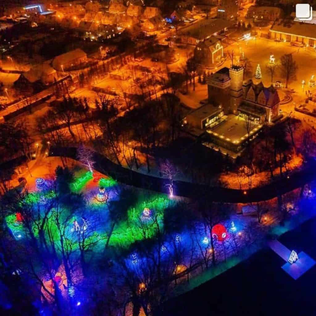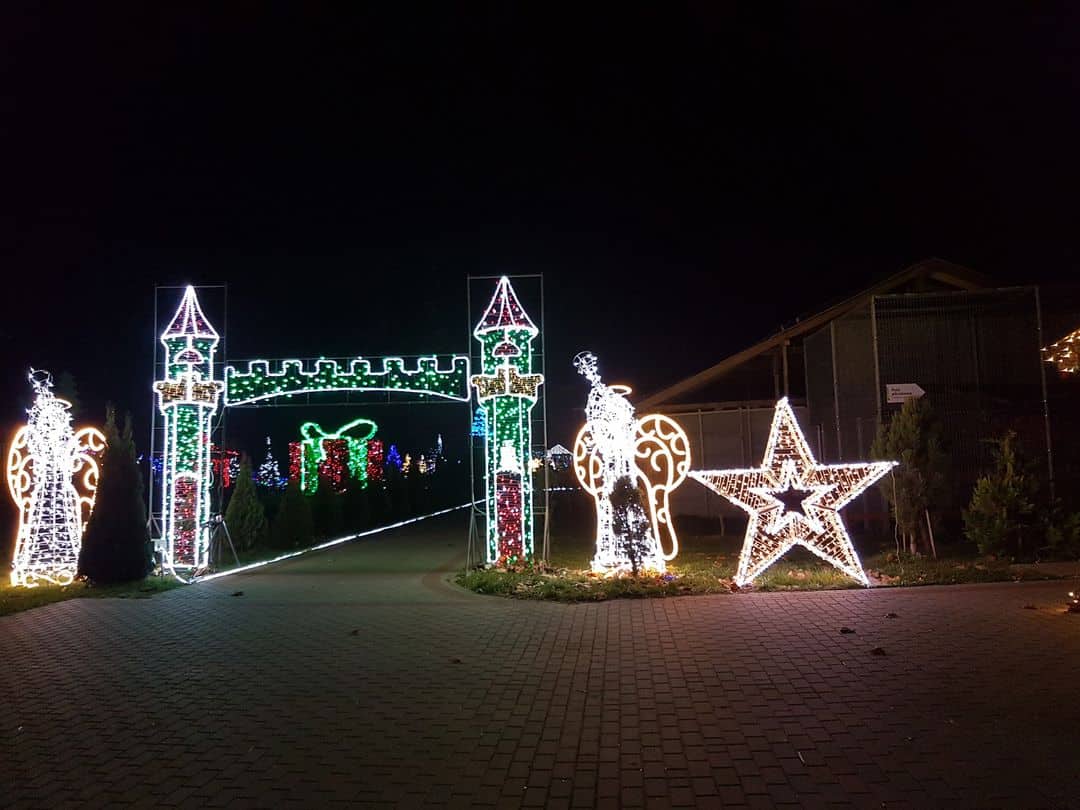 Deli Park is a park with mini landmarks, giant insects, mini zoo, located 18 km from the city of Poznań. During Christmas and the wintertime, festive illuminations are installed there. You can walk among the illuminated and decorated with colorful lamps the alleys of the park and various types of light illuminations such as a globe, a giant Christmas ball, illuminated light tunnels, a traditional Christmas nativity scene with live animals and Christmas decorations. There is also a Santa’s Grotto, his sleigh with reindeer, at the Santa’s desk, children will be able to sign up for the Book of Good Children.