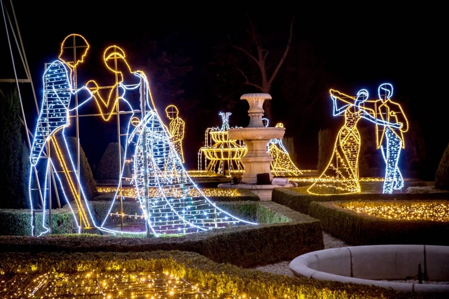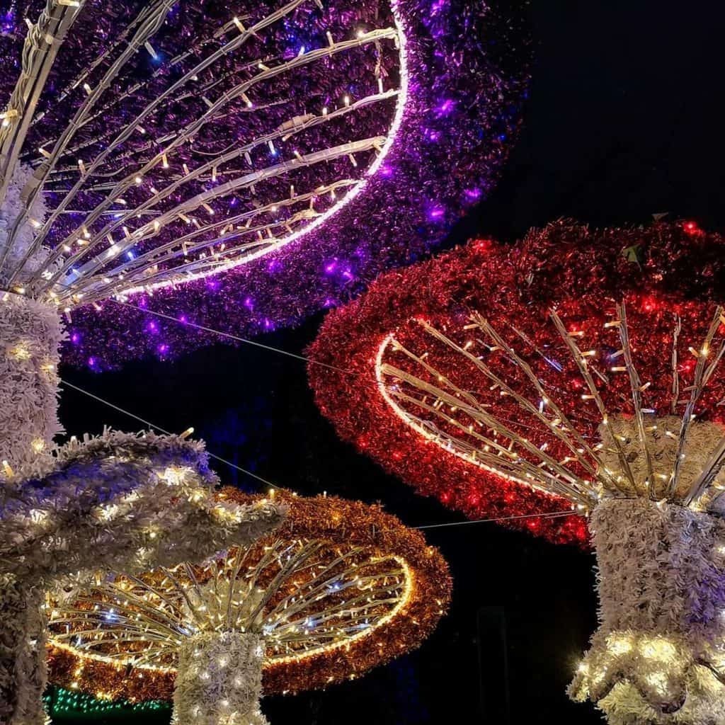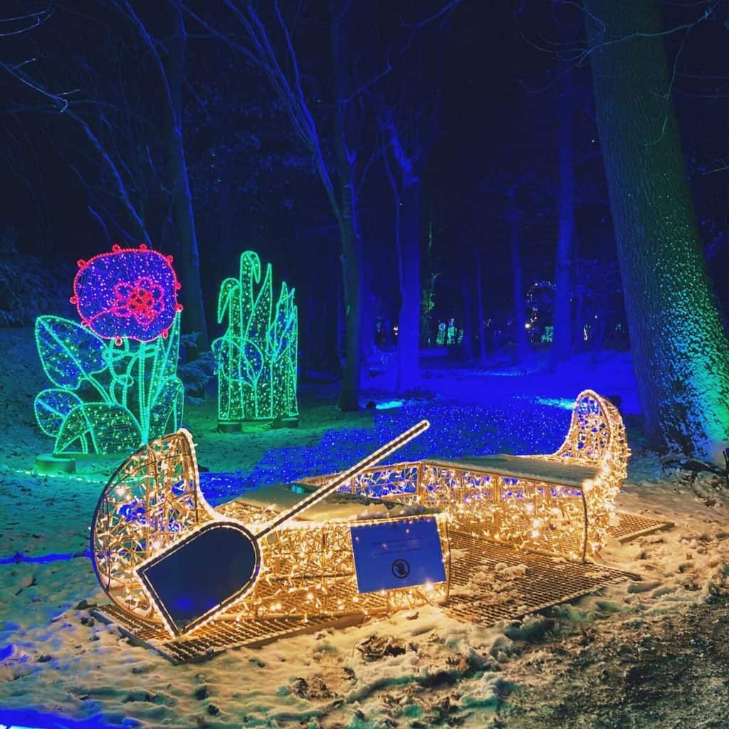 The Garden of Lights features Alice in Wonderland. In addition, all the light figures are surrounded by multimedia illuminations – a combination of sound, image and music. Other attractions include an 18-meter multimedia light tunnel, Christmas tree light shows, mappings, a meadow that changes colors, a two-sided light maze (50,000 lights). All attractions are spread over 6 hectares!